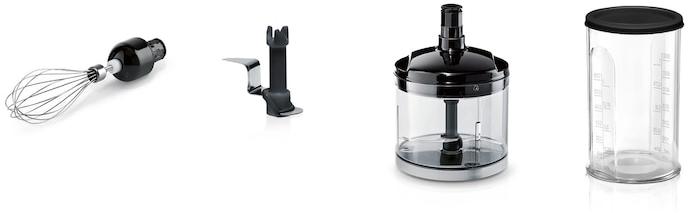 Bosch "biztonsági retesz": a hallható "klikk-mechanizmus" -nak köszönhetően a keverőszár, a habverő és az aprító biztonságosan kapcsolódik a motorhoz.