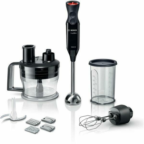 Bosch ErgoMixx MS6CB6197 Vertikális mixer, 1000 W, 2 penge tartozék, aprító, 12 teljesítményfokozat és Turbo funkció, 4 szeletelő/aprító tárcsa, Fekete Bosch ErgoMixx mixer: maximális teljesítmény. Optimális kényelem● 1000 W-os motor: elég erős ahhoz, hogy a legnehezebb összetevőket is feldolgozza. ● A 4 pengés penge ideális az optimális aprításhoz, az AntiSplash funkció pedig biztosítja, hogy az összetevők fröccsenés nélkül keveredjenek. ● Változtatható sebesség: 12 teljesítményfokozat és Turbo funkció minden keverék tökéletes konzisztenciájához. ● A mellékelt aprító az aprításhoz, daráláshoz és szeleteléshez. ● Kétkanálos tartozék: kiváló tészta- vagy krémfeldolgozási eredményekhez. KIVÁLÓ EREDMÉNYEK: - Teljesítmény: 1000 W - Nagy teljesítményű turmixgép - 12 sebességfokozat-választó a különböző típusú ételek optimális feldolgozásához - Külön turbó gomb a maximális teljesítményhez használat közben - 4 rozsdamentes acél penge. KÉNYELMESSÉG: - Csendes, alacsony rezgés - Könnyű kezelhetőség a puha tapintású fogantyúnak, a nagy gomboknak és az ergonomikus formának köszönhetően - Turmixgépláb kattanó kioldó rendszerrel - A turmixrúd és a tartozékok (a motortest és a fogaskerékfedél kivételével) mosogatógépben tisztíthatók. BIZTONSÁG: - BPA-mentes az élelmiszerekkel érintkező műanyag részek esetébenVERSATILITÁS - Kiváló minőségű rozsdamentes acél alap: az anyag nem befolyásolja az étel ízét. Rozsdamentes acélból készült, mosogatógépben mosható turmixgép láb - Rozsdamentes acélból készült, két kanállal ellátott tartozék tejszínhab, tojásfehérje felveréséhez vagy könnyű tészták feldolgozásához - Méretezett keverőtál (600 ml) fedővel az ételek hűtőben történő tárolásához.