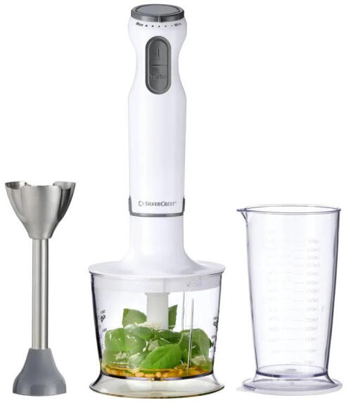 A SilverCrest SSMS 600 G1 botmixer szett egy sokoldalú, 2 az 1-ben konyhai segítőtárs, amely nemesacél kivitelével és elegáns fehér színével a konyha dísze lehet. A 600 W-os teljesítmény , a fokozatmentesen állítható sebesség és a turbó funkció garantálja, hogy a keményebb alapanyagok aprítása vagy a krémes levesek pürésítése is gyerekjáték legyen. Jellemzők: